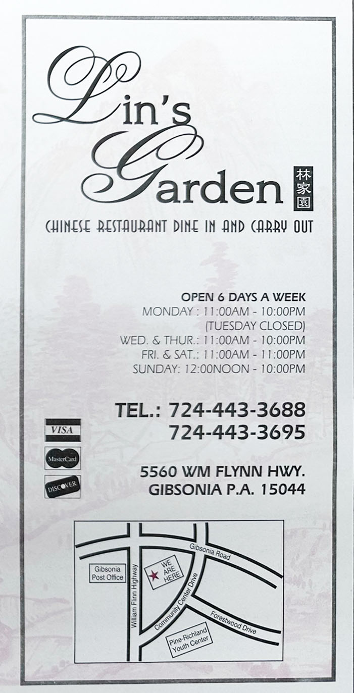 Call Lin’s Garden for more information, pricing and availability. Thank you in advance for choosing Lin’s Garden.